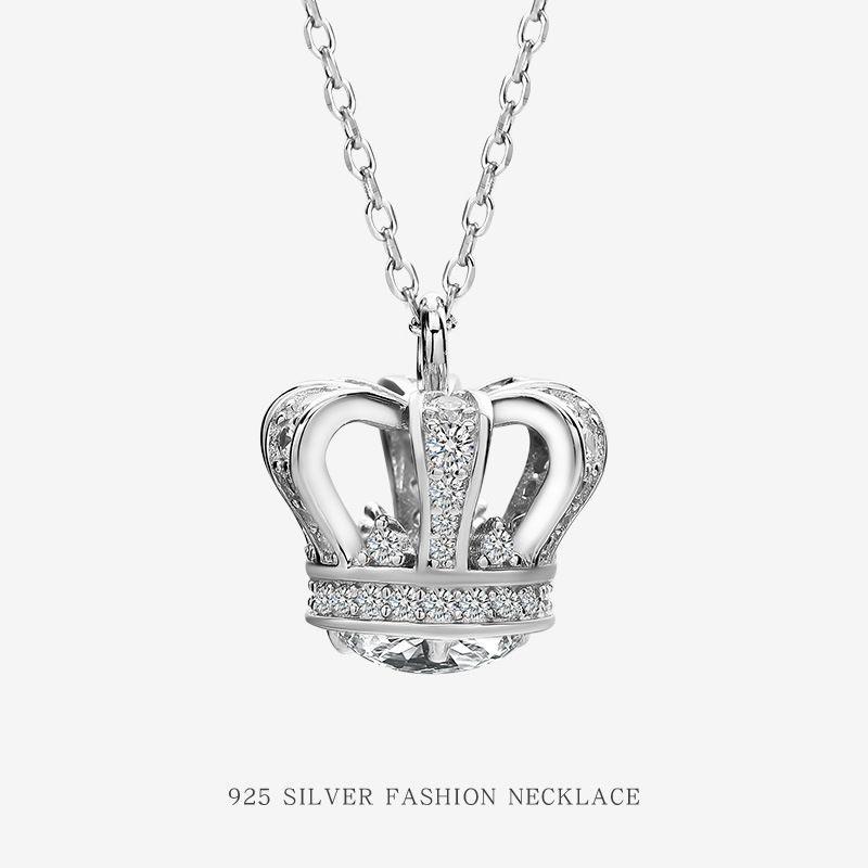 S925 Sterling Silver Noble Crystal Diamond Crown Pendant Necklace Holiday Gift Fine Wedding Party Jewelry