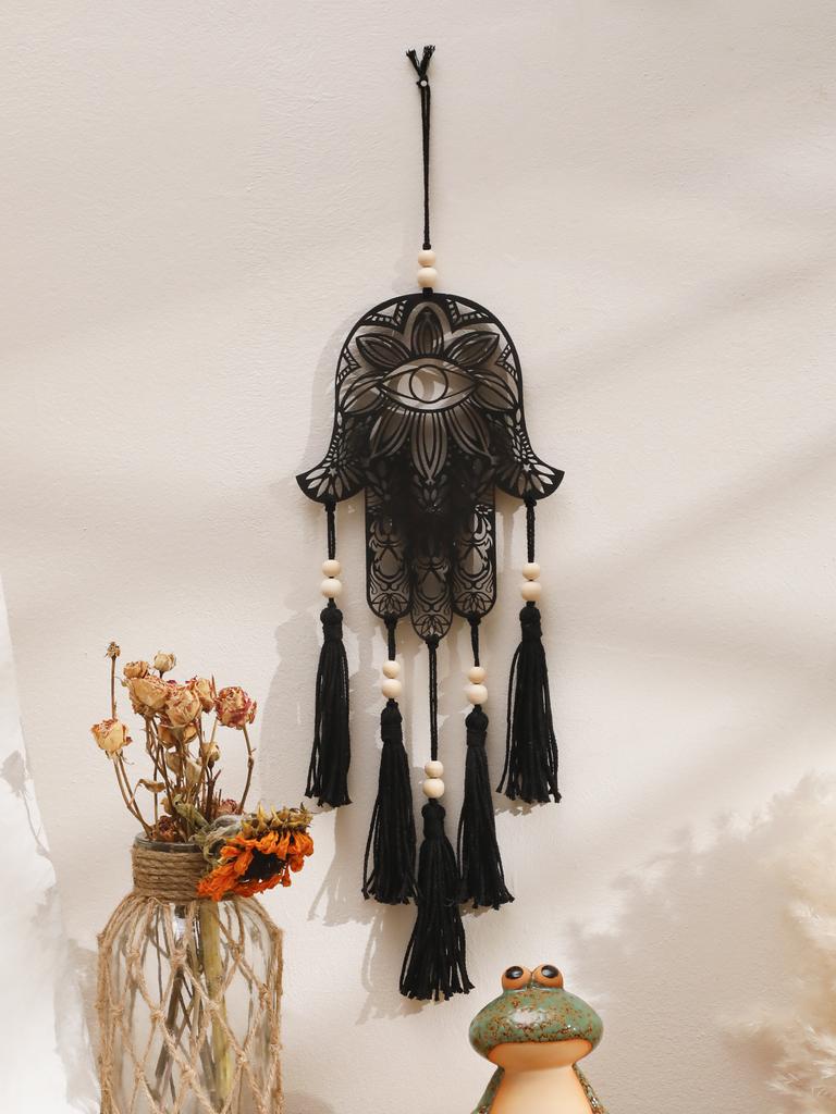 Wooden Wall Decor Wall Hanging Hamsa Hand Evil Eye Home Decor Macrame Hanging Decor Boho Home Decoration Macrame Room Ornament