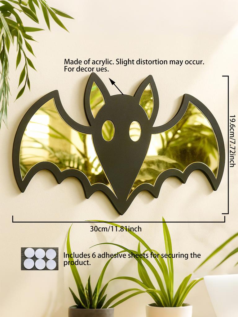 Acrylic Halloween Bat Shape Wall Mirror, Wooden Black Frame Wall Hanging for Living Room Bedroom, Spooky Aesthetic Wall Ornament