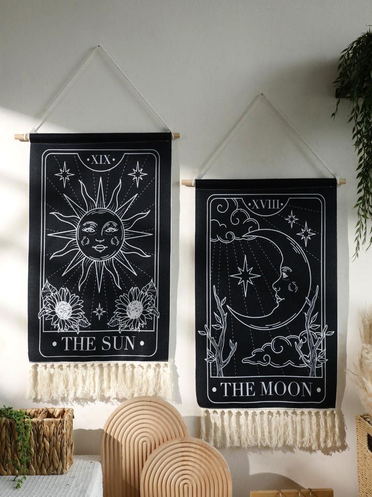 Black Sun Moon Tapestry Boho Bedroom Living Room Wall Decor Hanging Ornaments Aesthetic Room Decoration Crafts For Friend Gifts