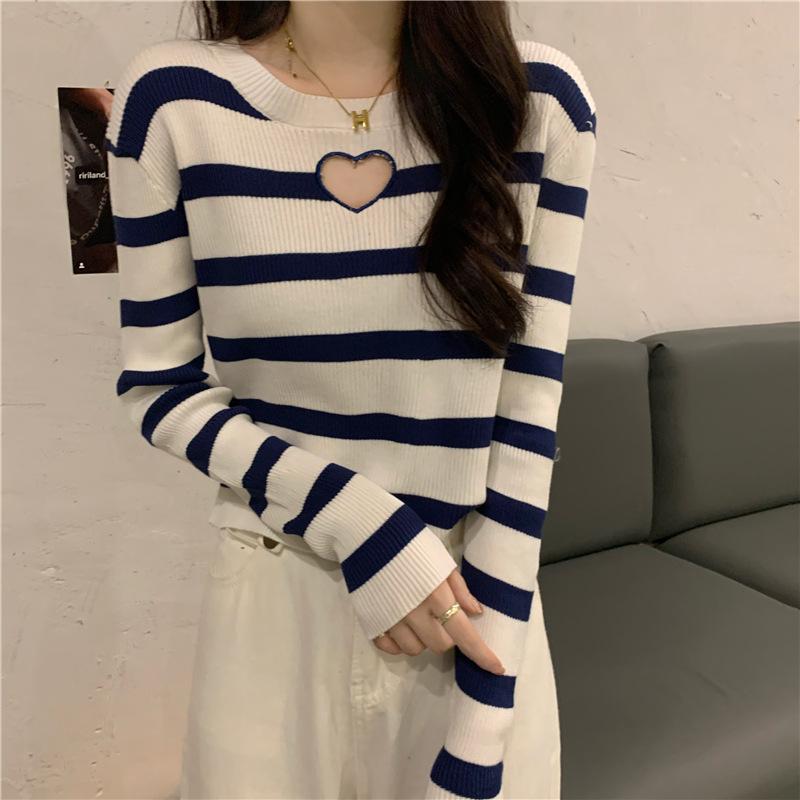 Striped Knitted Sweater Women's Thin Sweater Autumn 2025 New Crew Neck