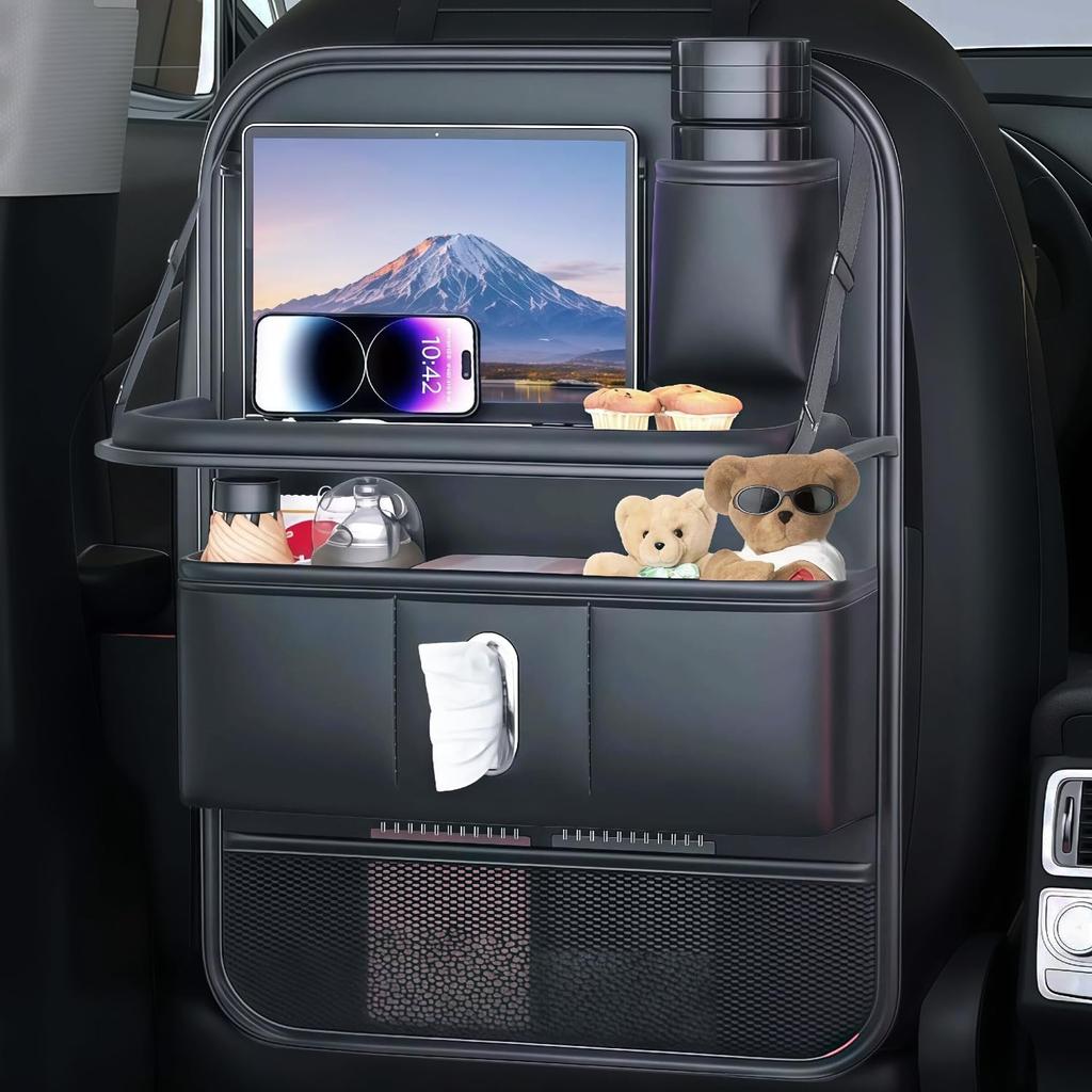 🍽 [Multifunctional Seatback Table] Enjoy Comfortable Dining and Work 🍽 This seatback table with a foldable table is highly rated among the most popular seatback tables. It dramatically improves the convenience of your backseat, allowing you to enjoy snacks, create a workspace for your kids, or place a tablet to watch videos. It folds neatly when not in use, so it doesn't get in the way.