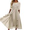 Crochet lace patchwork design makes this long dress add a touch of sweet and elegant. The waist tight design allows this casual dress to present your slender body curve.