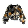 Women Coat Cardigan Single-breasted Long Sleeves Flower Elegant Keep Warm Elastic Cuff