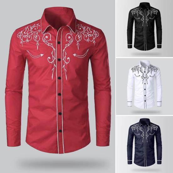 Introducing our men cowboy shirt, crafted with a blend of cotton material for ultimate comfort and breathability. This relaxed-fit cowboy shirt ensures all-day ease, making it perfect for any occasion. With its single-breasted lapel and embroidery design, this shirt exudes a casual yet elegant outfit. Versatile in nature, it can be effortlessly paired with casual pants, shorts, jeans, trousers, canvas shoes, or sandals for a simple and fashionable look. Whether you're heading to work, a party, vacation, or a date night, this shirt is a must-have addition to your wardrobe. Upgrade your style game with our men cowboy shirt today!