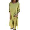 Women's Irregular High Low Hem Two Piece Set O-Neck Slit Top Wide