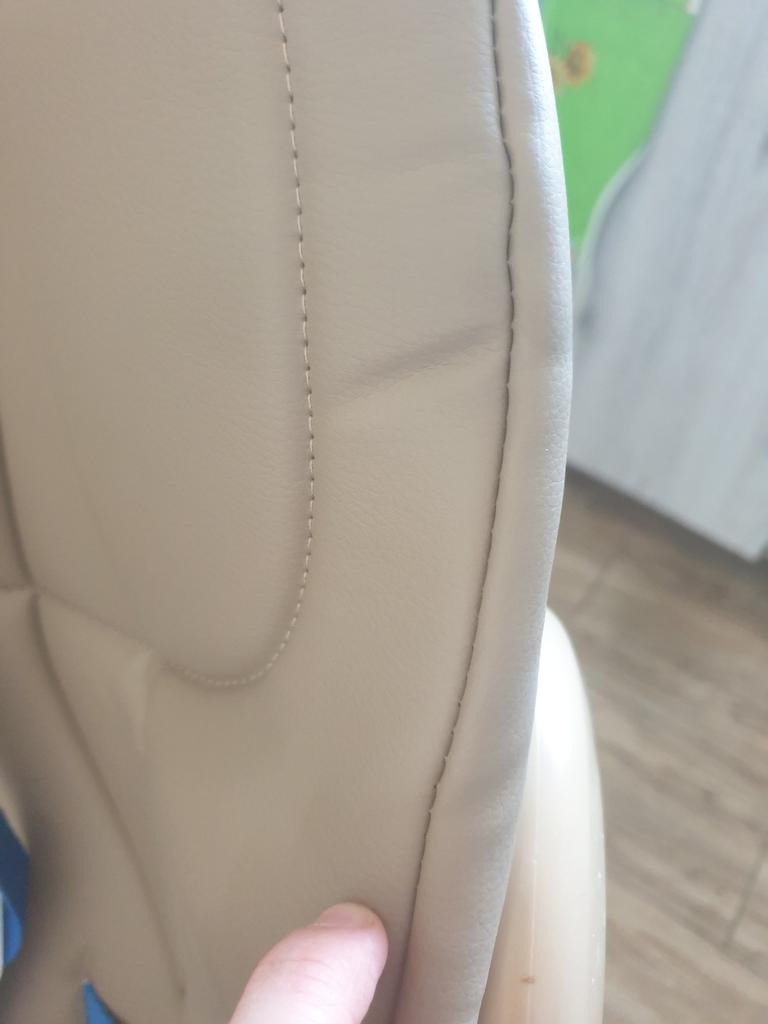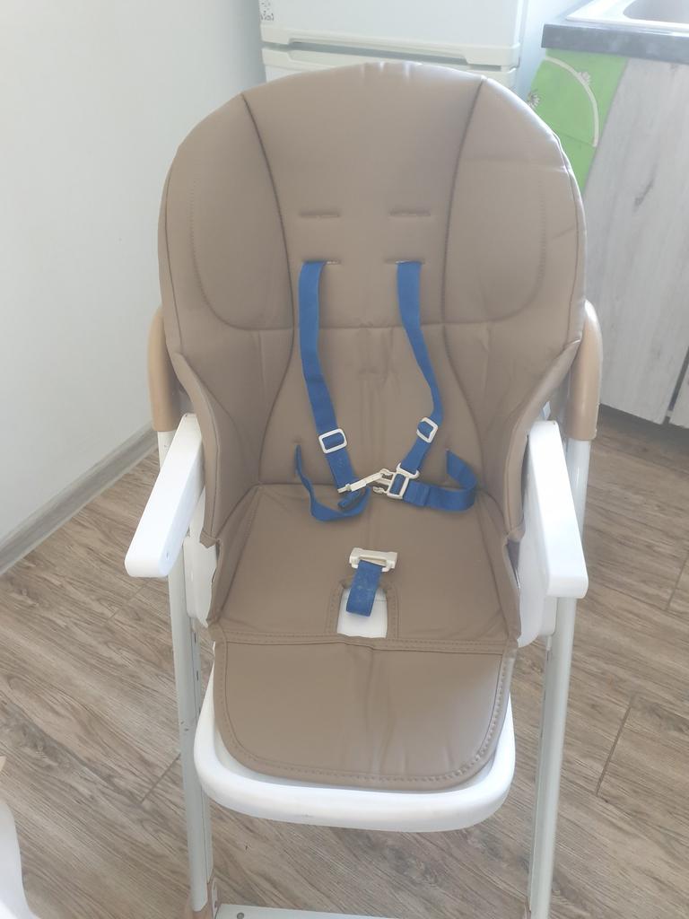 This is exactly what I was looking for, a little not quite for the chair model I have, but I like that it's made of artificial leather, of course, but that means I can easily wipe food off it without having stains and other ugly things. It looks exactly like what was originally on the chair, only the original cover, also made of leather, wore out and got damaged. I would say that for such a price, it looks very good, especially since you can get it with a pretty good discount. It doesn't fit with the straps, but it's not a big deal, the color is perfect