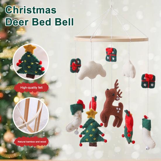 Charming Christmas Theme: Featuring felt decorations of reindeer, Christmas trees, stars, gifts, and snow, this charming Christmas wind chime brings the holiday magic to your baby's nursery. Create a festive atmosphere that captures the essence of the season's spirit.