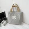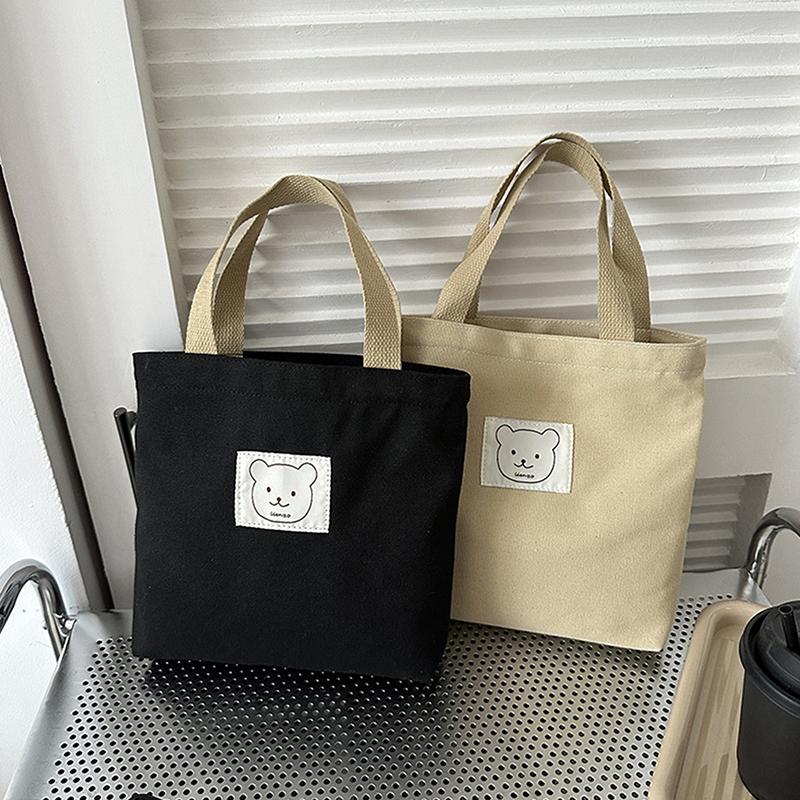 Women Fashion Handbag Canvas Small Bear Tote Bag Hand Lunch Bag Korean Canvas Bag Handbags Cotton Cloth Picnic Travel Bento Bucket Bag