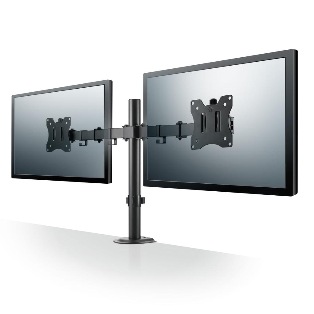 This double-arm arm can accommodate two monitors.