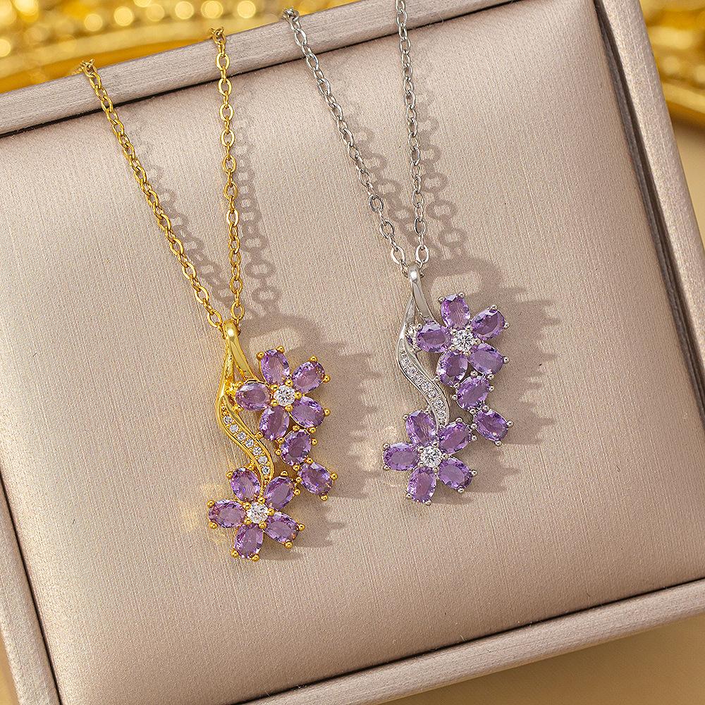Titanium Steel Flower Necklace Women Elegant Luxury Fashion Collarbone Chain Jewelry
