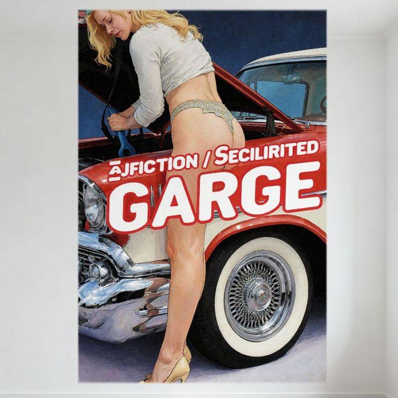 Sexy Blonde Woman Working On Red Classic Car Vintage Metal Tin Sign Retro Garage Wall Decor for Bar Pub Home 8x12 Inch Art Poste