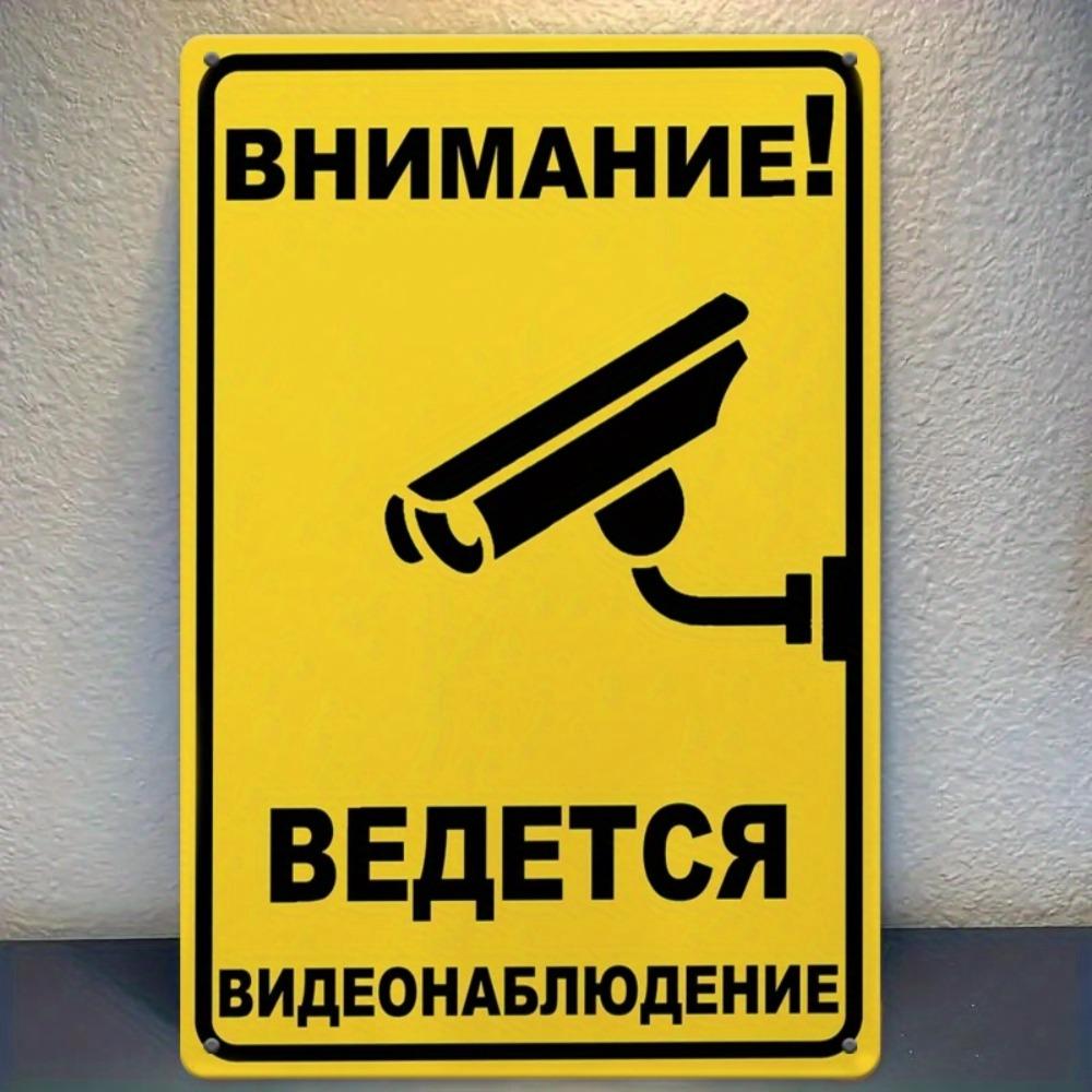 Russian Humorous Security Sign - Tinplate Weatherproof No Trespass Notice, 24-Hour Camera Graphics, Wall-Mounted Indoor/Outdoor