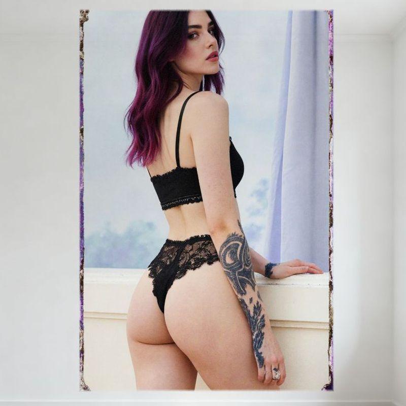 Sexy Purple Hair Woman Lingerie Tattoo Tin Sign Vintage Metal Poster for Home Decor, 8x12 Inch Wall Art with Sheer Curtains & Te