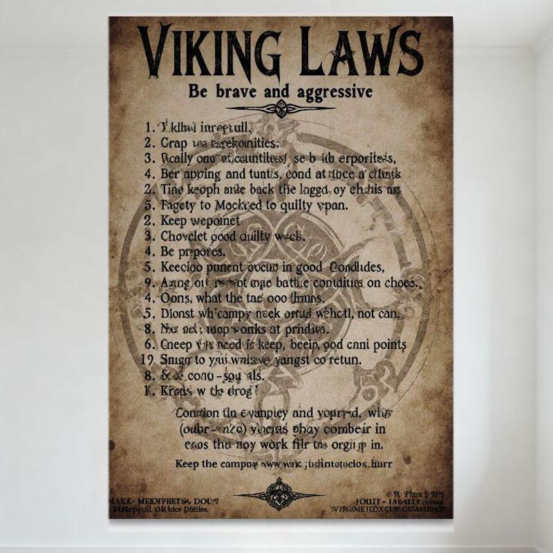 Viking Laws Vintage Style Tin Sign 'Be Brave and Aggressive' Old English Parchment Texture Metal Poster for Bar Pub Home Wall De