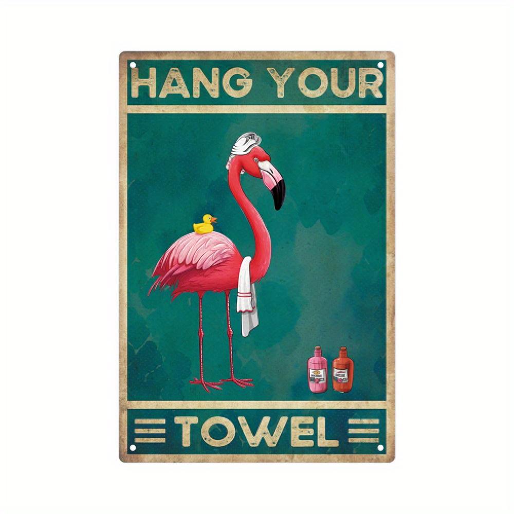 Flamingo Metal Sign, Vintage Tin Hanging Plaque For Toilet Bathroom Home Yard Decorations, 7.8 X 11.8 Inches, Hang Your Towel