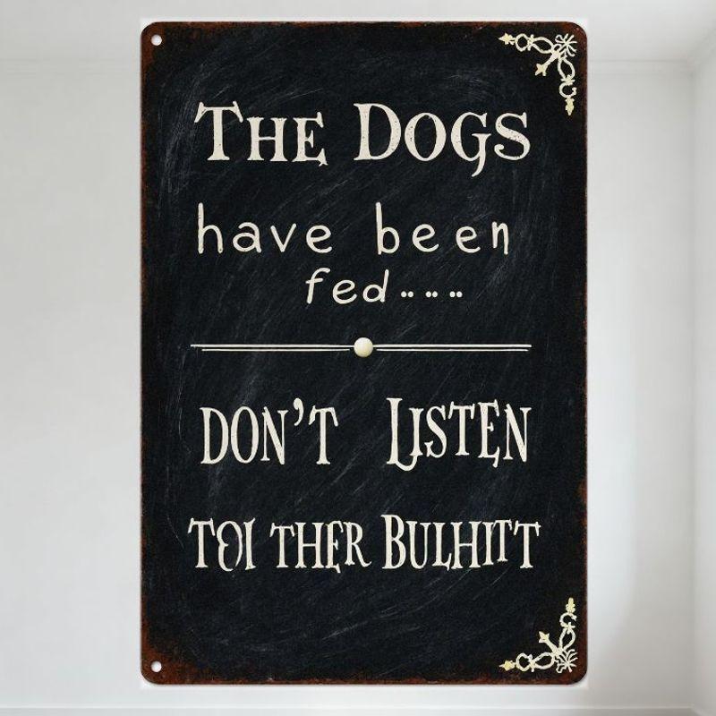 The Dogs Have Been Fed Don't Listen To Ther Bulhitt Rustic Chalkboard Style Tin Sign Vintage Metal Wall Decor with Gold Corners