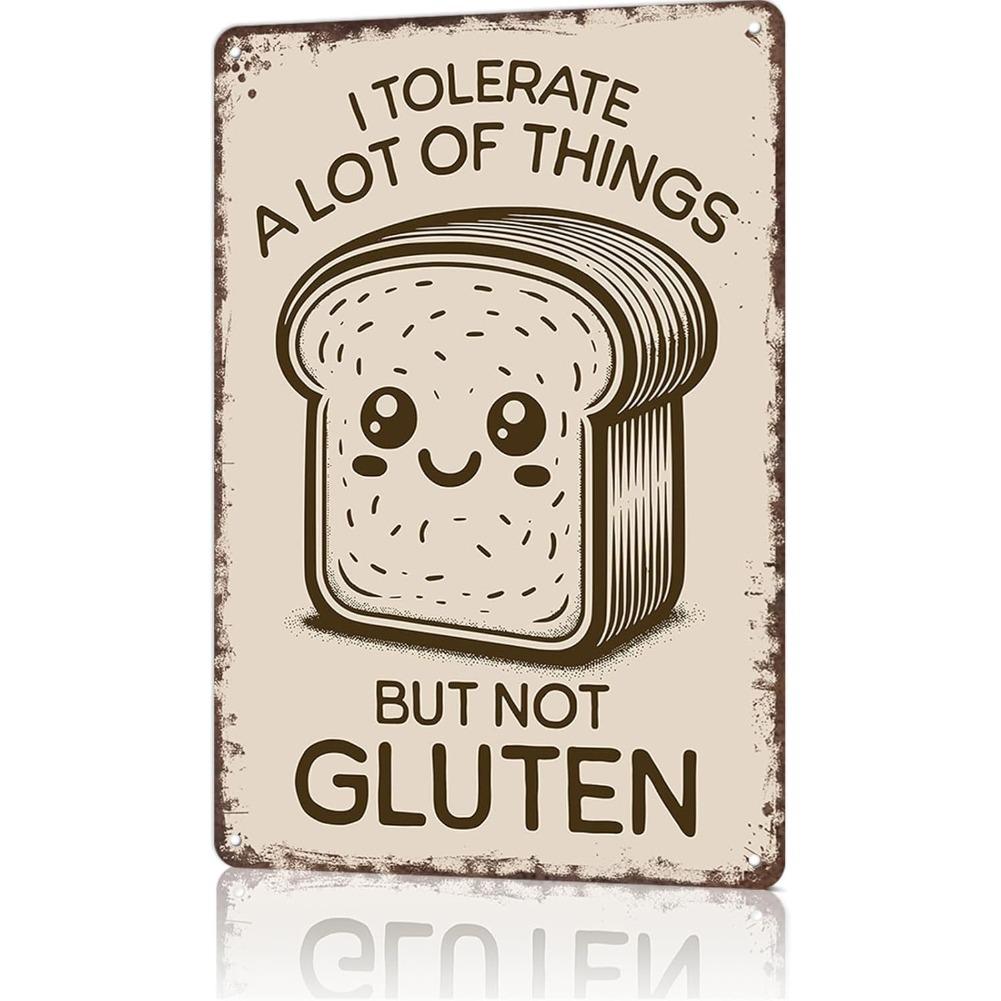 Funny Vintage Metal Signs I Tolerate A Lot Of Things But Not Gluten Cute Kawaii Bread Gluten Allergy Humor -Tin Sign Poster