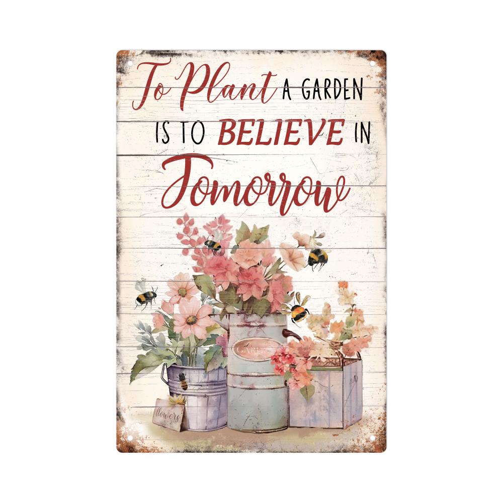 Garden Inspirational Quotes Vintage Metal Tin Sign, To Plant A Garden Is To Believe In Tomorrow, Wall Art Decor for Home Garden