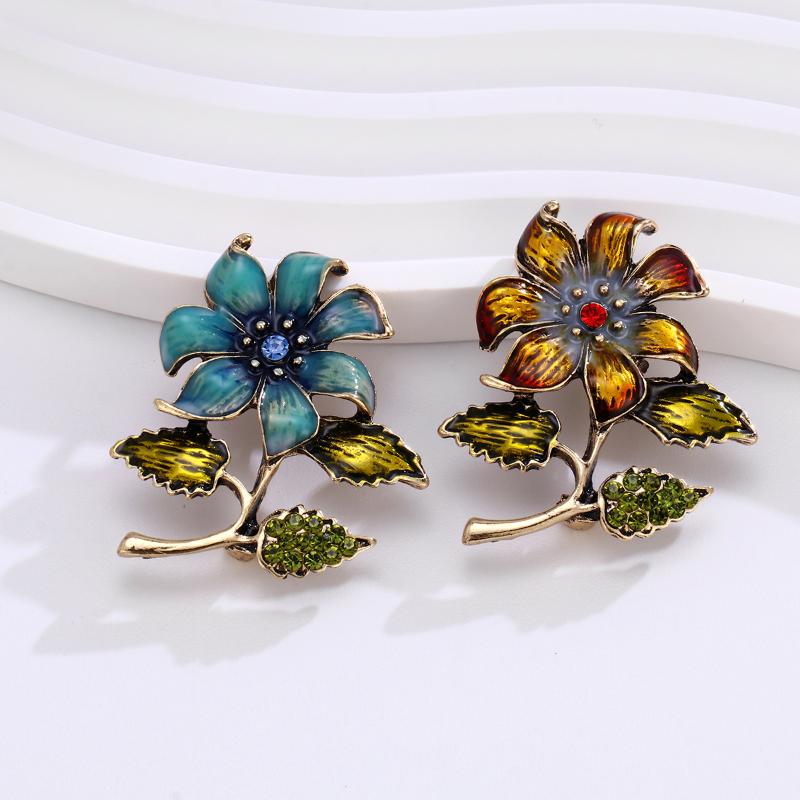 Vintage Elegant Enamel Plants Flower Brooches For Women Clothing Coat Accessries Gifts