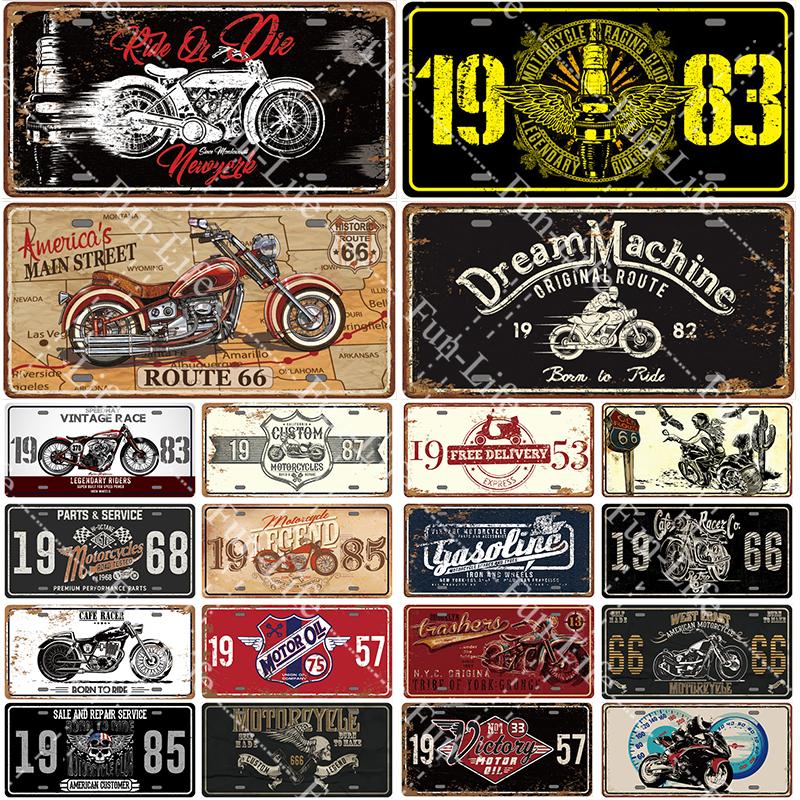 Motorcycle Vintage Metal Poster Retro Route 66 Motor Tin Signs Board / Pub / Bar / Cafe / Garage Decor 15x30cm