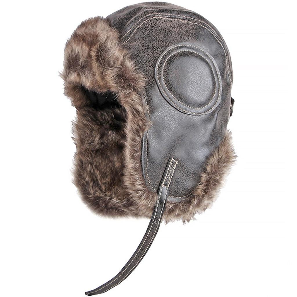 This winter cap features a warm inner lining, an inner flaps, earflaps, and a brim. The leather exterior makes this a stylish and cool pilot's cap.