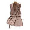 This women's vest is crafted from high-quality polyester, offering a soft, lightweight, and breathable feel that ensures comfort during spring and autumn. Featuring a solid color design with a light texture, it adds a fashionable touch to any outfit.