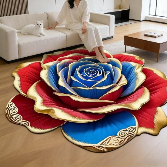 Elegant 3D Floral Design: Showcases a unique three-dimensional flower shape with layered petals that add depth and visual interest. This artistic design transforms the mat into a decorative accent piece, elevating bedroom aesthetics while maintaining practical functionality as a floor covering.