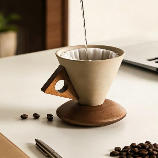 Creative Ice Cream Cone Design with Solid Wood Base: Inspired by the playful shape of an ice cream cone, this ceramic cup boasts a frosted texture and artistic flair. The exclusive solid wood base enhances its unique aesthetic, doubling as a mini vase for added decorative appeal. Perfect for those who appreciate contemporary style combined with functional artistry.