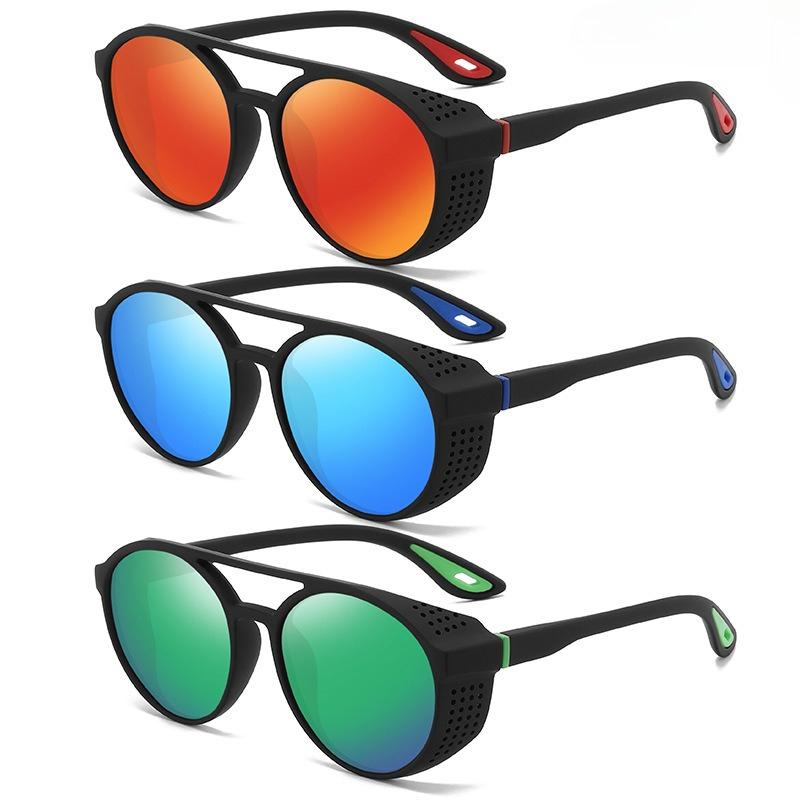 New Circular Steampunk Polarized Sports Sunglasses Trendy Double-Bridge Side-Cutout Shades Unisex Design for Fishing and Driving