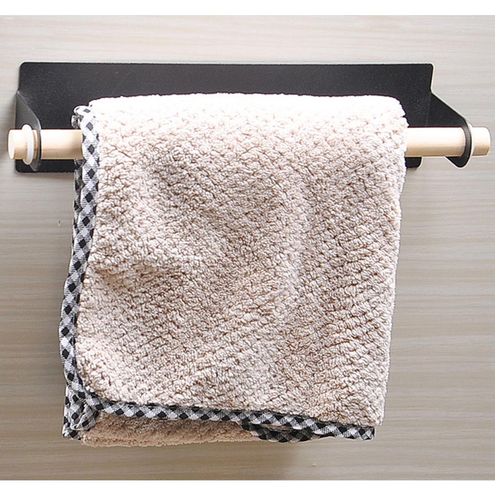 Bodahome Adhesive Steel Wood Towel Rack Kitchen Towel Rack