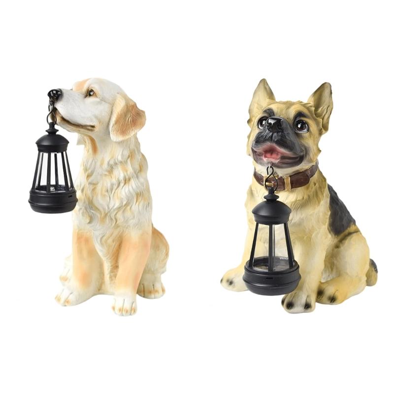 Garden Decoration Dog Statues Outdoor Golden Dog Puppy Statue with Solar Outdoor Figurine Light for Garden Patio