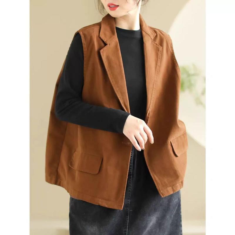 Suit Collar Vest Jacket 2025 Autumn New Splice Button Pocket Loose Casual Sleeveless Top