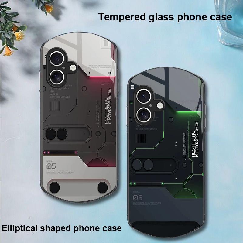 Machine Built-in For Apple IPhone 16 11 13 15 14 Pro Max 12 Mini 7 8 Plus XR X XS Elliptical Shaped Tempered Glass Phone Case