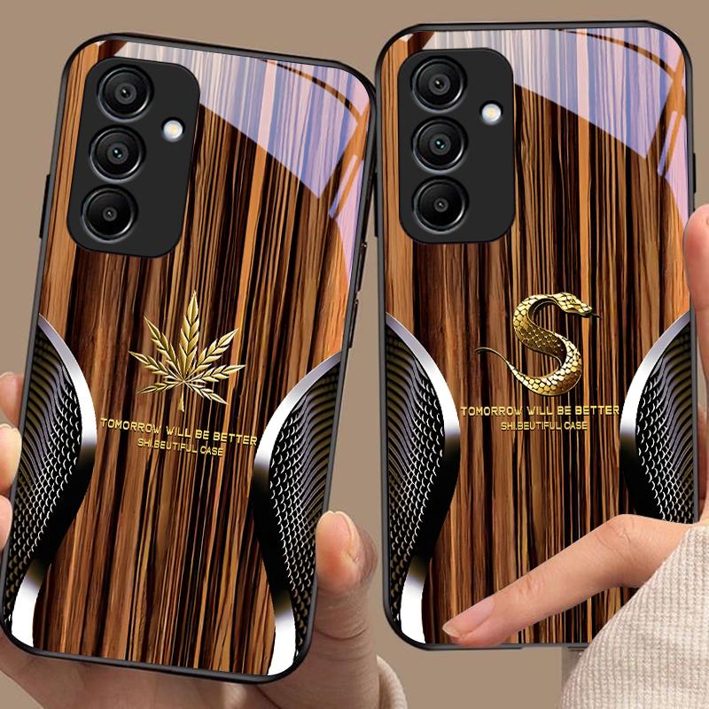 Wood Grain Snake For Samsung Galaxy A15 5G 54 4G 51 50 24 35 90 71 12 51 53 52S 80 22 34 Black Tempered Glass Phone Case