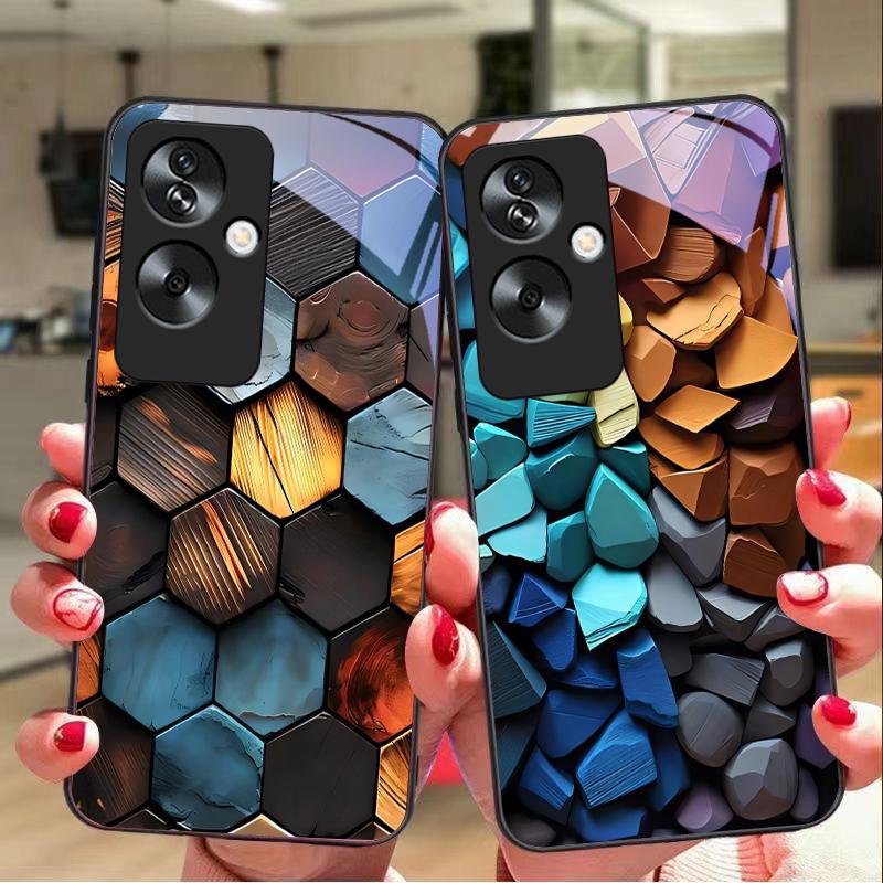 Colorful Wood Grain For Oppo A79 5G 58 78 74 60 4G Reno 11F Realme GT 6 11 Note 50 10 C55 X2 Tempered Glass Black Phone Case