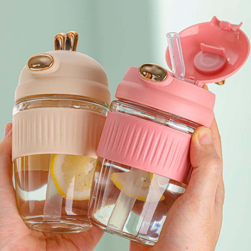 Rabbit Cup Portable Straw Cup Cute Wind Girl High Value Summer Going Out Glass Water Cup