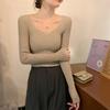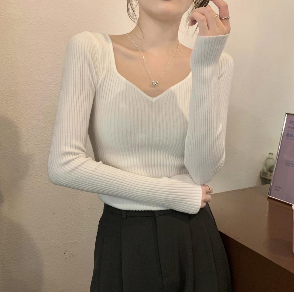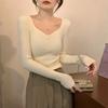 Core-spun Yarn V-neck Peach-neck Sweater Women's Spring, Autumn and Winter Solid Color Shirt Slim-fitting Long-sleeved Inner Chic