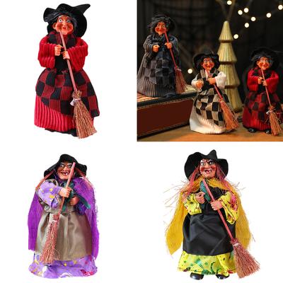 Halloween Figurines Halloween Witch Figurines Vintage Figure With Broom For Fireplace Haunted House Props Porch Party Apartment