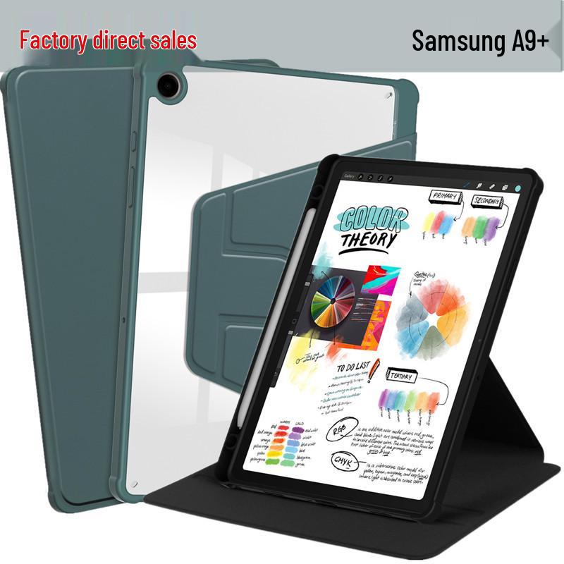 Samsung A9+ Case with Rotating Acrylic Pen Slot, Transparent Ultra-thin Leather Stand