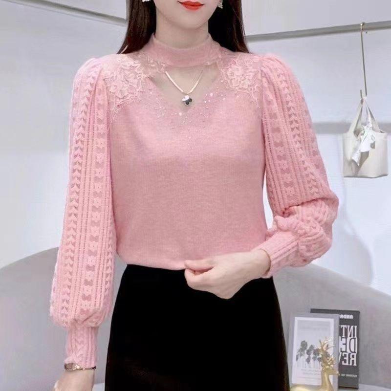 Fleece and Thickened Base Layer Shirt, Women's Lace Shirt, Cut-out T-shirt, Stylish Small Shirt for Autumn and Winter, with An Inner Top