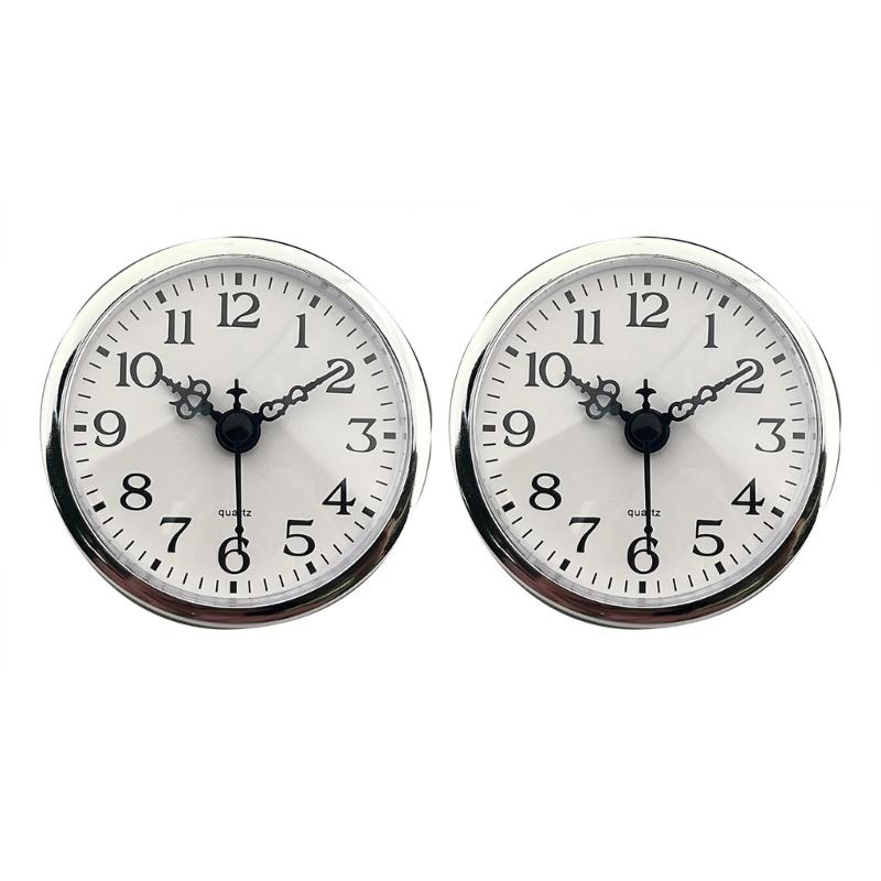 Miniature Quartzs Clock Insert 80mm Round Face Arabic Numerals Silver Trim Clock Head for Home and Office Crafting Use