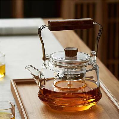Glass Teapot Heat-Resistant Borosilicate Boiling Thickened Bamboo Handle Household Tea Set WF