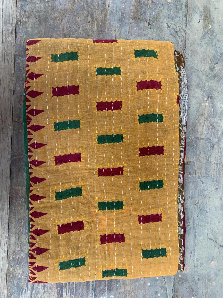 Each piece is one-of-a-kind, made by rural artisans using generations-old techniques. The quilt is reversible; giving you two beautiful looks in one, and can be used as a bedspread, throw, picnic blanket, sofa cover, or wall tapestry.