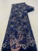 Blue African Tulle Lace Fabric 2025 French Net Sequins Fabric Sewing Embroidery With Groom Lace Tulle Mesh Nigeria Party Dress