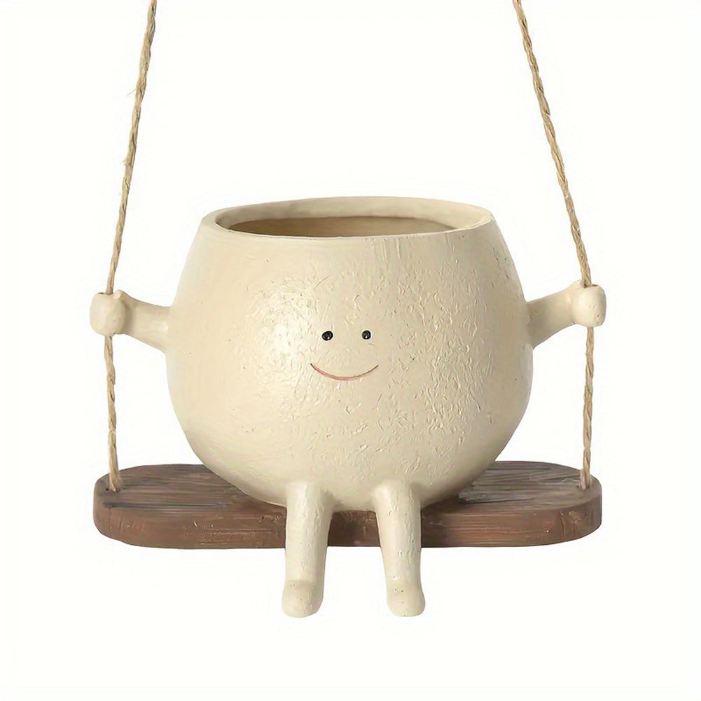 Hanging Hammock Planter Resin Hanging Swing Chair Planter Creative Smile Face Flower Container for Indoor Outdoor Plant