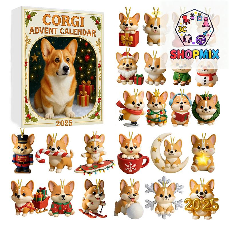 Countdown With Cute Corgi Mini Ornaments, Dog-Themed Christmas Decoration Set For Home Décor