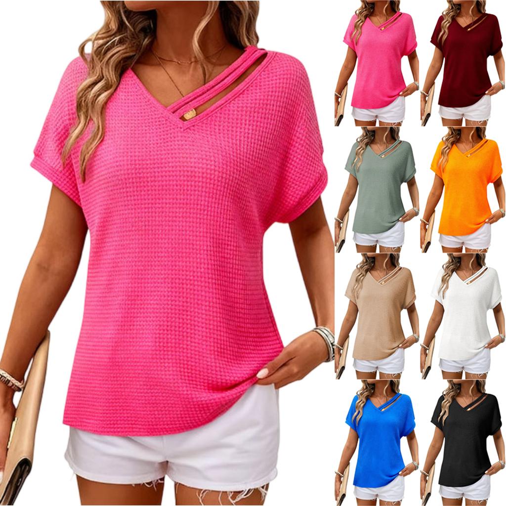 Women's Asymmetrical Short Sleeved Collar Shirt Top
