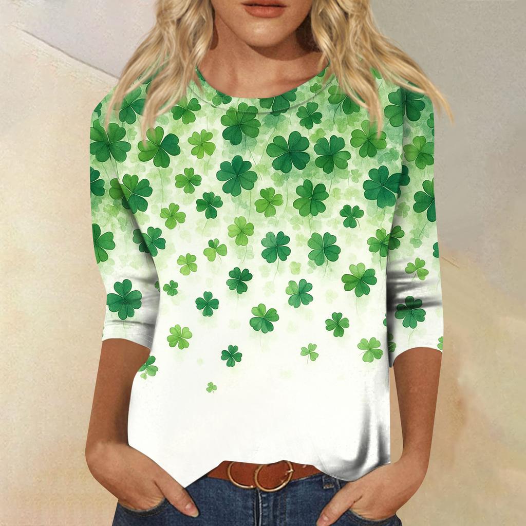 Women's Fashionable Casual Three-quarter Sleeve Printed Round Neck Top