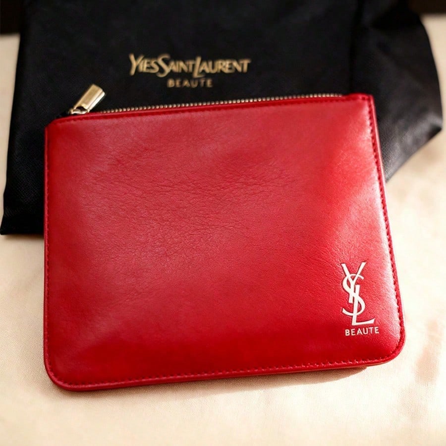 Saint Laurent Makeup Pouch - PU Leather Cosmetic & Coin Case, Luxury Free Gift with Purchase
